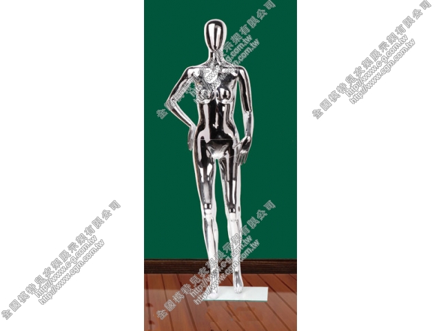 ★★其他特殊环保PE塑料电镀及水转印处理模特儿参考资料: ★★1.材料:环保PE塑料2.颜色:另有★a.电镀处理(电镀金色01、电镀银色02、电镀珍珠黑03、电镀玫瑰红04.电镀青蓝05..),★b.水转印处理(水转印金片、水转印木纹色等)★c.肤色,浅肤色,亮光白(瓷白),亮光黑(瓷黑),平光白,平光黑都可以。***可根据不同的需求而更改、指定颜色***3.重量: 11公斤左右/箱(附方型强化玻璃底盘)4.外纸箱包装尺寸:112*37*32cm,毛重:11kg(含强化玻璃重量), 净重:8.3kg。材积:5才5.底座尺寸:强化玻璃尺寸长42cm,宽30cm,附底座。6.假发一个装的箱子规格:21*21*19cm/假发四个装的箱子规格:35*24*19cm***本公司还有多种姿势女模特儿,男模特儿以及童模模特儿可供选择。 ***全国模特儿衣架有限公司是一家集设计、生产、销售为一体的国际化企业,营销总部位于台湾台中。环保PE塑料模特产品说明时尚塑料女模特,逼真化妆效果,超高档强化玻璃底盘,给你的靓靓时装店铺添姿彩!1.环保产品---a.环保生产:过程干净环保。b.环保材料:可回收不造成地球公害。2.价格経済---中高档质量,低档价格。3.一体多变---可任意调整头部360度旋转及手部动作,配合服装展示效果。4.不掉漆不易损毁---不用担心掉落时产生刮伤掉色与碎裂折断现象。5.体积小重量轻---节省运费容易搬运。6.供货充足出货快速---旺季不断货产品快速到达客户手里,满足顾客需求。7.亚洲体型---女模身高175公分,三围88 65 87公分,男模身高190公分,三围92 77 93公分,童模D1D2 130cm,童模D3 110cm.更衬托服装的优点。8.小腿插件(可穿鞋)。9.配强化玻璃底座。10.包装说明五层纸箱、产品以胶膜包覆,不易碎。