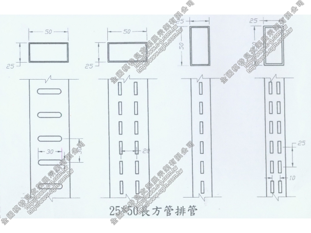 顏色:25X50mm電鍍鉻25X50扁管(沖孔1排/單面)