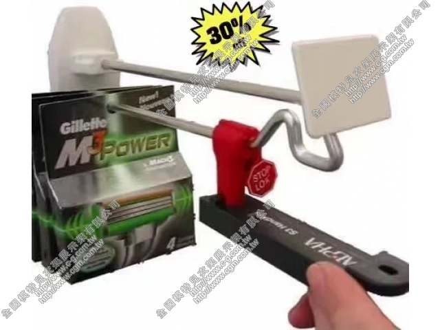 防盜原理:防盜掛鉤鎖是用來固定在商品掛鉤的前端,起到鎖的作用,從而使商品無法從掛鉤上取下。